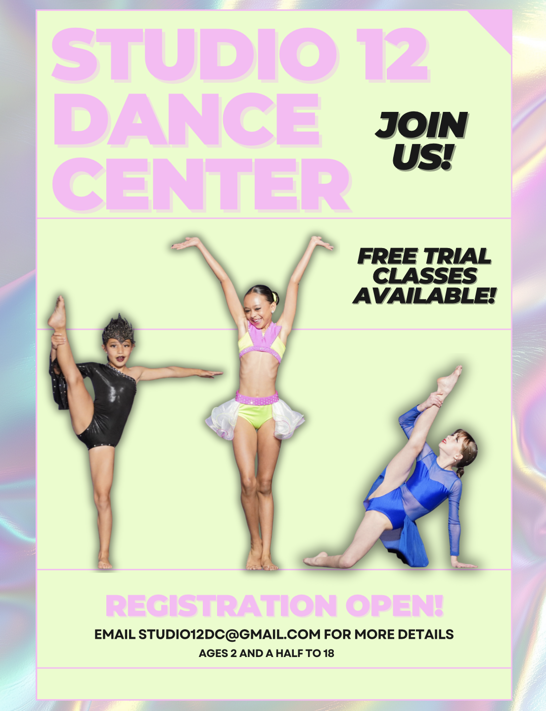 We’re excited to offer a recreational dance program—perfect for dancers of all ages who want to train and grow without the commitment of a competitive team. Recreational dancers will take class alongside our competitive teams based on skill level, allowing them to experience high-quality training in a supportive and inspiring environment. Our goal is to provide every dancer with a positive, memorable, and confidence-building dance journey.